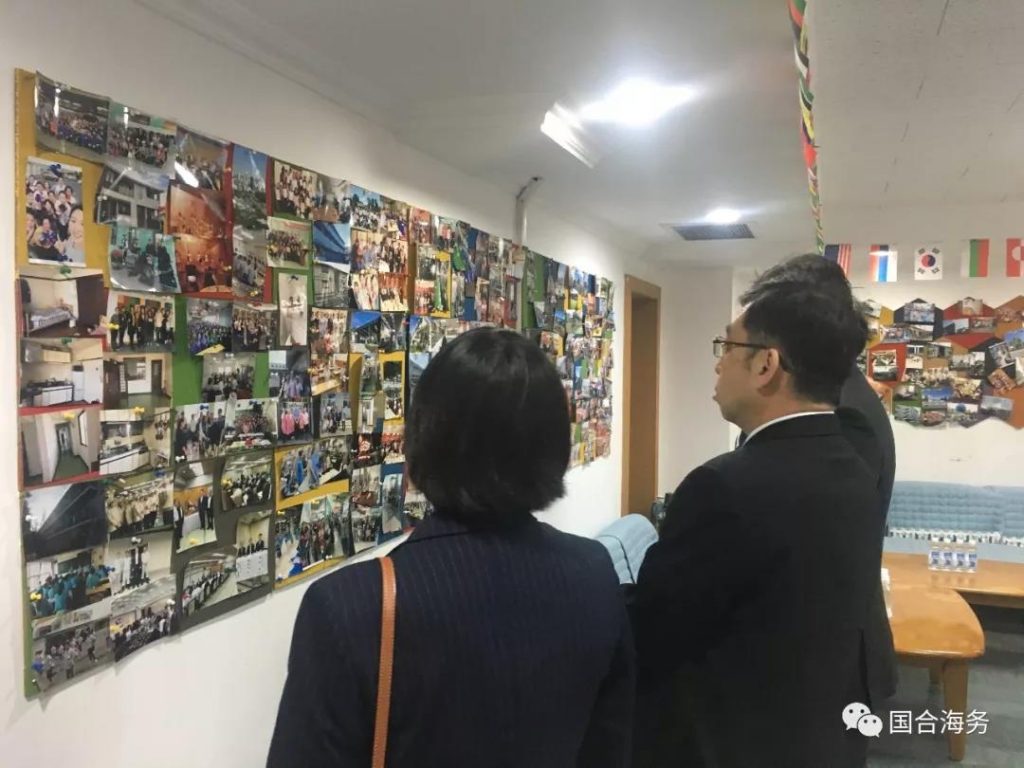 丸山浩一所长一行参观了我司创办的大连国合出国人员培训学校,在吴剑校长的陪同下与师生进行了亲切的交谈,并鼓励在校学生努力学好日语。